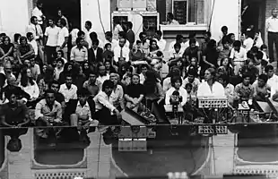 Alfons and Aloys Kontarsky performing Mantra with Stockhausen (foreground), Shiraz Arts Festival, 2 September 1972