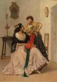 Despite this, Ussel decided to follow in his family's footsteps and became a Lieutenant in 1854. A year later, he painted his first canvas, inspired by the Battle of Lepanto.[2] He then moved to Cartagena, where he continued his studies and became a deputy in the provincial "Commission on Artistic Monuments". He also married the daughter of a wealthy businessman.[1]