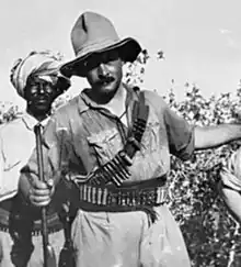 In June 1940, immediately after Italy's entry into the Second World War, Serrazanetti enlisted in the Royal Corps of Colonial Troops, participating in the following month in the conquest of the Sudanese town of Kassala. In early 1941 the British counteroffensive resulted in the collapse of the Italian empire in East Africa; on 3 April 1941 Addis Ababa was abandoned, with the Duke of Aosta, Viceroy of Italian East Africa, retreating towards the Amba Alagi with his staff and surviving troops. The viceregal command, while leaving Addis Ababa, decided to transfer some important documents to Jimma, and Serrazanetti volunteered for the mission. On 4 April he left for Jimma at the head of a group of six Italian soldiers, but after marching for eighty kilometres, the party ran into a group of Ethiopian guerrillas, which blocked their way. Serrazanetti handed over the documents to his soldiers, ordering them to continue towards Jimma (where they safely arrived) on a different path, and remained behind to keep the Arbegnoch busy, armed with two rifles and some hand grenades. His lifeless body, surrounded by Ethiopian spears, was found two days later by passing Italian trucks.[26][27]