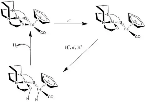 - ↑ Lyon, Erica J; Zhao, Xuan; Georgakaki, Irene P.; Darensbourg, Marcetta Y. (2003). "The Organometallic Active Site of [Fe]hydrogenase: Models and Entatic States". Proceedings of the National Academy of Sciences of the United States of America. 100 (7): 3683–3688. Bibcode:2003PNAS..100.3683D. doi:10.1073/pnas.0536955100. PMC 152982. PMID 12642671.