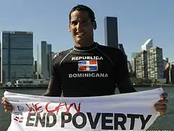 Marcos Aurelio Díaz Domínguez (born January 12, 1975) is a Dominican ultra-distance swimmer of open waters. He is the first swimmer to unite all five continents in the world by swimming. His achievements include, crossing the English Channel in 2004. In 2005 he crossed the stretch of Gibraltar twice. In the year 2006, he competed in the turbulent waters of the Bhagirathi River, where he won first place. In 2007 he swam around the island of Manhattan twice. Finally, in 2010 he completed a feat in which he swam across all five continents in promotion of the United Nations Millennium Development Goals.[1]