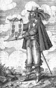 We have only some fragmented data about Vulson de la Colombière's life: even major 19th-century biographies deliver only incomplete information. He was born in a Protestant noble family at the end of the 16th century in Dauphiné. He was a son of François, a lawyer, and Michelle Odde de Bonniot.[2] In his youth, he fought for Henry IV. According to one story, in 1618 he went to Paris to request a pardon, after he killed his treacherous wife and her lover.[3]