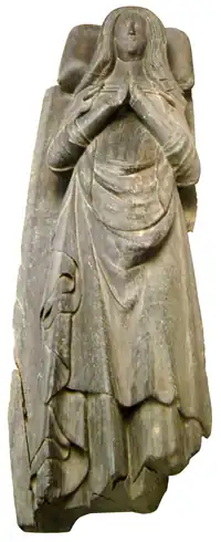 ![]() Detail from oak wood effigy believed to represent Lady Margaret II Audley,[1] formerly in Tawstock Church under a recessed arch in wall of north chancel, now in the Museum of Barnstaple and North Devon | |