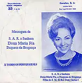 Maria Pia de Saxe-Coburgo e Bragança[1][2][3] (March 13, 1907 – May 6, 1995[4]), also known by her literary pseudonym Hilda de Toledano, was a Portuguese writer and journalist who claimed to be the illegitimate daughter of King Carlos I of Portugal. From 1932 she also claimed the right to the title of Duchess of Braganza and to be the rightful heiress to the throne of Portugal.[5]