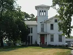 The house is considered one of the finest examples of the Italian Villa style in Davenport.[2] The two-story, frame house follows a gable-roofed L-plan. A three-stage entrance tower rises from the angle. The house features large paired rolled brackets and architrave molding ornamentation on the broad cornice. The windows in the south wing of the house are flanked by recessed panels, which contain shutters that are flush with the wall surface. The front gable contains two small round-arched windows. The third stage of the tower has three round-arched windows on all four sides. The rectangular windows are topped with molded cornices. There is a 1½-story, gable-roofed, kitchen wing attached to the back of the house. The front porch and stoop are not original to the house.