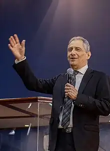 On April 13, 1980, at the age of 22, Mario Vega was sent to Santa Ana for a church of the Misión Cristiana Elim Internacional.[2] In July, he was ordained pastor by Sergio Daniel Solórzano Aldana. In 1997, Mario Vega became senior pastor of Misión Cristiana Elim Internacional, San Salvador.[3] He is considered as a resource person to shed light on certain social issues.[4][5] It is also involved in the fight against poverty by setting up concrete programs with the Church; Training in employment, environmental education, testing for HIV.[6]