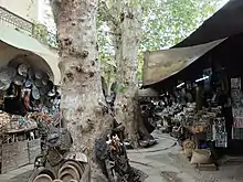 The site of the maristan today is occupied by a funduq (caravanserai-type building) which houses various shops. This building is located between Tala'a Kebira street and the Zawiya of Moulay Idris II. It opens onto a small public square on its west side, distinguished by the trees at its center, which was historically designated as the Souq el-Henna or henna market.[1][2][3][4]: 373–74