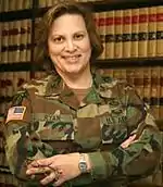 Sáenz Ryan was assigned to the 1st Armored Division Artillery in Nuremberg, West Germany. She returned to the United States and, through the U.S. Army's Funded Legal Education Program, she attended law school in Nashville, Tenn., at Vanderbilt University.[1] After earning her law degree, Sáenz Ryan was selected for Order of the Coif and in 1988, admitted to the New York State Bar #2235323.[4] Sáenz Ryan was reassigned to the Judge Advocate General's Corps (JAGC) as a trial counsel at Fort Sill, Oklahoma.[1][2]