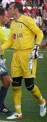 Schwarzer's contract with Middlesbrough expired in June 2008, and although he was offered a new contract,[28] manager Gareth Southgate had to plan a future with a new goalkeeper as, on 21 May 2008, Schwarzer signed a two-year contract at Fulham, ending an 11-year association with the Teesside club.[29] Schwarzer revealed in an interview with The World Game that he had received offers from Bayern Munich and Juventus but declined their offers because they could not guarantee him the position as the number-one goalkeeper.[30]
