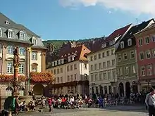 The Marktplatz (German: Marketplace) is a central square in Heidelberg's old town, the Altstadt. It has served as a marketplace since the establishment of the city in Medieval times. The Hauptstrasse runs along one side and the Church of the Holy Spirit and the Town Hall are located on the square.