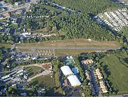 Its final owner was Sandra A. Stetson, widow of prior owner G. Robert Stetson, Jr. Robert died on April 27, 2012, at the age of 66.[5] It had one runway, and at the end of its life averaged 37 flights per day with approximately 40 aircraft based on its field.[6] In December 2018, Sandra Stetson sold the airport to Capital Group Properties,[7] which plans to redevelop the site into the Airport Industrial Park.[8]
