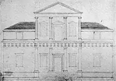 Original front elevation drawing of Monticello, 1771