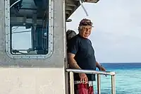 ![]() Martin Daly looking out from the Wheelhouse of the M.V. Indies Trader | |