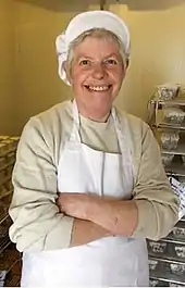 Mary Holbrook (1939–2019) was a cheesemaker and curator. She studied archaeology and worked in museums before retiring to work on her family farm in Timsbury, Somerset where she kept goats and pigs. The goats were milked to make a variety of cheeses which were sold through gourmet outlets such as Harrods and Neal's Yard Dairy.[1][2][3]