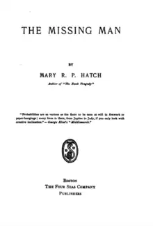 Mary R. P. Hatch (née, Platt; pen name Mabel Percy; June 19, 1848 – November 28, 1935) was an American author from New Hampshire. She contributed stories to the Transcript, Mountaineer, Fireside Companion, Chicago Ledger, Frank Leslie's Illustrated Newspaper, Springfield Republican, Granite Monthly, The Writer, and several magazines including the Portland Transcript, The Saturday Evening Post, Peterson's Magazine, as well as other periodicals. Her novels included The Strange Disappearance of Eugene Comstocks, The Bank Tragedy: A Novel, and The Missing Man, among others.