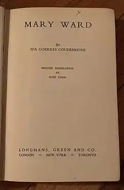 - ↑ Görres, Ida Friederike (1939). Mary Ward. Translated by Codd, Elsie. Longmans, Green and Co. pp. vii–viii.