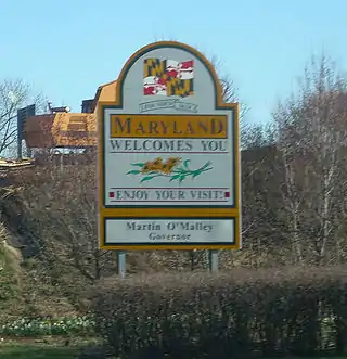 ![]() ![]() ![]() Standard route signs in Maryland | |