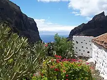 Forests including cypresses and palm trees abound. The village lies at the head of the Masca Gorge. The trail from the village down the gorge to the beach on the Atlantic Ocean is a popular, though strenuous, hiking route, which takes about 3 hours each way.[2]