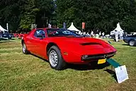 The Maserati Merak (Tipo AM122) is a mid-engined 2+2 sports car produced by Maserati between 1972 and 1983.[1] The Merak was closely related to the Maserati Bora, sharing part of its structure and body panels, but was powered by a 3.0 L V6 in place of the latter's 4.7 L V8. The extra cabin space gained by fitting a smaller and more compact powertrain was used to carve out a second row of seats—suitable for children or very small adults—making the Merak not just a less expensive alternative to the Bora but also a 2+2.