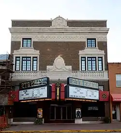 The Masonic Temple Theater (subsequently the Temple Twin Theaters, and in 2013 the Main Street Cinemas[2]) is a historic building located in Mount Pleasant, Iowa, United States. Built in 1923, it combined both commercial and fraternal functions in one building. The theater company paid for the construction of the lower level, and the Masons paid for the upper level. The Masons continued to occupy the space until 1989 when they moved to another facility.[3] The building was designed in the Neoclassical style by Owen, Payson & Carswell, and K.A. Bergdahl was the contractor who built it. Neoclassical features include the balustrade, the medallion with the Masonic insignia, volutes above the windows, the parapet roof, and the ornamental frieze and cornice.