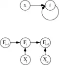 The second view is the probabilistic view: the random variable depends upon the random variable , which depends upon , which depends upon the random variable . This view is most commonly encountered in the context of graphical models.