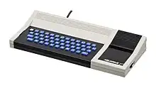 Aquarius is a home computer designed by Radofin and released by Mattel Electronics in 1983. Based on the Zilog Z80 microprocessor, the system has a rubber chiclet keyboard, 4K of RAM, and a subset of Microsoft BASIC in ROM. It connects to a television set for audiovisual output, and uses a cassette tape recorder for secondary data storage. A limited number of peripherals, such as a 40-column thermal printer, a 4-color printer/plotter, and a 300 baud modem, were released. The Aquarius was discontinued in October 1983, only a few months after it was launched.