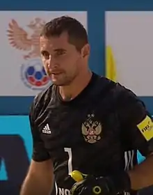 - ↑ Вратарь сборной России по пляжному футболу перешёл в "Кристалл" [The goalkeeper of the Russian beach soccer team moved to “Crystal”]. Metro News (in Russian). 25 February 2018. Retrieved 27 September 2019.