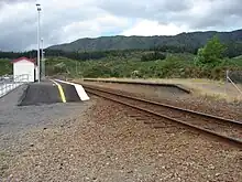 Nothing remains of the crossing loop, and all sidings have also been lifted.[5] Despite this, there is still evidence of the former presence of the loop including the second platform, the gap between it and the main line, and the extra-wide Maymorn Road overpass. There is a passenger shelter on the main line platform (the shelter on the second platform has long been removed), a couple of equipment buildings, and a shed for a surfaceman's trolley.[6] On 14 November 2009 the Rimutaka Incline Railway excavated the back of the second (disused) platform to both retrieve fill and to make way for the formation of their own rail yard.[7]