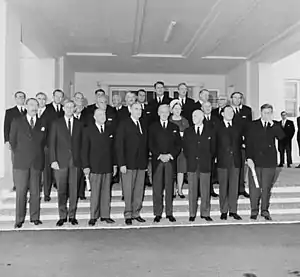 ![]() Governor-General Lord Casey with the newly sworn in McEwen ministry | |