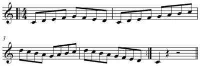 - ↑ Randel, Don Michael; ed. (2003). The Harvard Dictionary of Music, p.768. Harvard. ISBN 9780674011632. "Sequence: The repetition of a phrase of melody (melodic sequence)...at different pitch levels, the succession of pitch levels rising or falling by the same or similar succession of intervals."