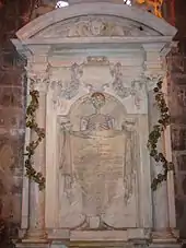 Prince of Orange René of Châlon died in 1544 at age 25. His widow commissioned sculptor Ligier Richier to represent him in the Cadaver Tomb of René of Chalon, which shows him offering his heart to God, set against the painted splendour of his former worldly estate. (Church of Saint-Étienne, Bar-le-Duc)