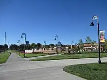 Construction on the new University Center started in 1967 with the 12-story library, which was completed and dedicated in August 1970. Following the dismantling of the seating areas and demolition of support structures at Memorial Stadium in 1969, the former stadium and field area were used for parking. Construction on the student center and Risman Plaza, located between the student center and library, started in 1969 on the site of what had been a football practice field. The student center was completed and dedicated in January 1973. Most of the Memorial Stadium site was used for an access road to the student center, known as Risman Drive, and a permanent parking lot for visitors to the university.[14] In 2012, as part of an upgrade and expansion of Risman Plaza, the road and parking lot were reconfigured to allow for construction of a grassy area known as the Student Green, which overlaps the former Memorial Stadium end zone area.[15]