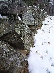 The stone wall at Frost's farm in Derry, New Hampshire, which he describes in "Mending Wall"
