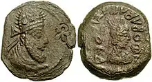 Meredates was a son of the Parthian King of Kings Pacorus II (r.78–110).[1] The Kingdom of Characene had since 141 BC been ruled by Hyspaosines and his descendants as Parthian vassals; the last king of the line, Attambelos VII without much trouble submitted to the Roman emperor Trajan in 116 AD.[2][3] However, with Trajans failure and death the following year, Attambelos VII political authority collapsed. The Parthians most likely put an end to Hyspaosinid rule in the region and appointed one of their own on the throne.[3] Based on the Characenian coins, Meredates became king of the region in c.131,[4] during the reign of his brother Vologases III (r.110–147).[1] During his rule, Meredates became a powerful client-king, due to his commercial leadership and a lucrative alliance with the Palmyrene merchants.[5]