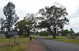 Merrygoen is a small township in north-western New South Wales, Australia. The town is a junction point between railway lines to Troy Junction on the Coonamble railway line, and the Gwabegar railway line. The railway station is now closed, however wheat silos and several sidings remain in use.[2] Merrygoen is in the Gap to Dubbo section of the Intrastate Network managed by the Australian Rail Track Corporation.[3]