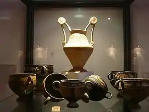 The Messapians were an Iapygian tribe who inhabited Salento in classical antiquity. Two other Iapygian tribes, the Peucetians and the Daunians, inhabited central and northern Apulia respectively. All three tribes spoke the Messapian language, but had developed separate archaeological cultures by the seventh century BC. The Messapians lived in the eponymous region Messapia, which extended from Leuca in the southeast to Kailia and Egnatia in the northwest, covering most of the Salento peninsula.[1] This region includes the Province of Lecce and parts of the provinces of Brindisi and Taranto today.