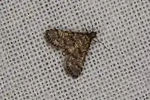 The wingspan is about 15 mm. The wings are pale brown with a pattern of dark brown zigzag lines.[2]