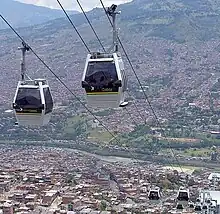 Metrocable is a gondola lift system implemented by the City Council of Medellín, Colombia, with the purpose of providing a transportation service that complements the Medellín Metro. It was designed to reach some of the city's informal settlements on the steep hills that mark its topography. It is largely considered to be the first urban cable propelled transit system in South America. The transportation infrastructure is already established and has been in service since 2004.