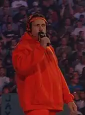 Cole was rarely involved in storylines; however, he has had minor roles in storylines involving Heidenreich, Stephanie McMahon, Vito, and D-Generation X (Triple H, Shawn Michaels, Chyna, and Rick Rude).[3] His 2004 angle with Heidenreich became infamous due to an implied scene where Heidenreich "Heidenraped" him in the arena restroom; in a 2008 interview, Heidenreich explained that the Cole rape angle was McMahon's idea and that Pulp Fiction came to mind when Stephanie McMahon approached him with the idea.[8] He called play-by-play at the 2006 Royal Rumble match because Jim Ross, who had commentated the last two Royal Rumble matches with Tazz, had been (kayfabe) "fired" and replaced by former ECW play-by-play man Joey Styles, reuniting the original SmackDown! team of Cole and Jerry Lawler. On February 3, 2006, it was announced that Cole and Tazz were starting a radio show on Howard Stern's Howard 100 on Sirius Satellite Radio, but the show was a trial run that only lasted a couple of weeks.[9]