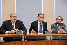 Despite the sign of the Pact for Apulia, Emiliano often criticized Prime Minister Renzi, who was also the leader of his own party, who was considered by Emiliano too centrist. He often implemented regional policies in contrast with those of the government. This contrast reached its peak at the 2016 Italian oil drilling referendum, which was promoted and supported by Emiliano and opposed by Renzi.[15] During the referendum campaign, Emiliano repeatedly accused the government of having introduced the law to favor oil companies and Renzi accused the governor of having promoted the referendum only for personal purposes. Although 86% voted in favour of repealing the law, the turnout of 31% was below the majority threshold required to validate the result.[16] Moreover, during the campaign for the 2016 Italian constitutional referendum, concerning the Renzi's Senate reform, Emiliano supported the "No", in open opposition to the line of his party. On 4 December, "No" won with 59% of votes and Renzi resigned as Prime Minister.[17][18]