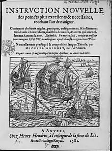 An expanded, French-language version of the 'Nieuwe Onderwijsinghe prepared by Coignet was published in 1581 by Hendrik Hendriksen under the title Instruction nouvelle des poincts plus excellents et nécessaires, touchant l'art de naviguer... nouvellement practiqué et composé en langue thioise, par Michiel Coignet,... Depuis reveu et augmenté par le mesme autheur…[16]
