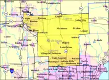 Michigan's 9th congressional district is a United States congressional district located in The Thumb and northern portions of Metro Detroit of the State of Michigan. Counties either wholly or partially located within the district include: Huron, Tuscola, Sanilac, Lapeer, St. Clair, Macomb and Oakland. With a Cook Partisan Voting Index rating of R+18, it is the most Republican district in Michigan.[2]
