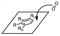 A reliable model has been developed that accounts for the stereo- and site selectivity of the reaction.[5] With the large substituent of the arene pointing up and other substituents pointed leftward, approach of dioxygen occurs to the top face of the arene, on the right-hand side. This model breaks down for some highly substituted substrates, such as phenanthrene and 2-naphthalenes, and does not apply to BZDs.