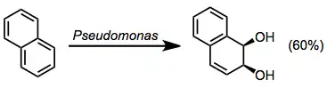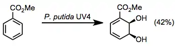Toluene dioxygenase oxidizes toluene to 1,2-dihydroxyl-6-methylcyclohexa-3,5-diene.[6] Aromatic esters are also good substrates for these enzymes, giving dihydrodiols in moderate yields along with some other oxidation products (see equation (8) below).