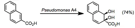 The oxidation of aromatic compounds to dearomatized products is a step in the processing of arenes. Since seminal study by Gibson on enzymes inPseudomonas putida, four classes of enzymes have been identified that accomplish arene oxidation to dihydrodiols:[2]