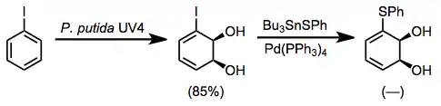 For instance, thioether-containing dihydrodiols may be accessed by the oxidation of iodobenzene followed by cross-coupling in the presence of tin sulfides.[11]