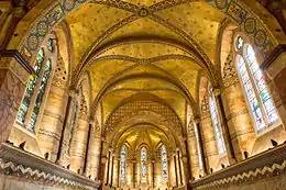 The former chapel of the Middlesex Hospital by John Loughborough Pearson is now the only surviving building of the Hospital. The chapel was completed after the architect's death under the supervision of his son, Frank, also an architect. The chapel was structurally complete by the mid-1920s; the surrounding hospital was then demolished and rebuilt around it between 1928 and 1929. The chapel was not formally opened until 1929, by which time much of the lavish interior decoration of marbles and mosaic in a mix of Italian gothic and romanesque styles had been added, giving it the appearance it broadly retains today. The chapel is a Grade II* Listed building.[15]