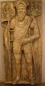 Croatian medieval military organization was based on Hungarian banderial system. This kind of organization was mentioned for the first time in 1260.[4] In the aftermath of 1491 Peace of Pressburg, Croatian feudal magnates such as Frankopans, or Counts of Krbava were permitted by the king to hold 400 strong banderium (with previous figure being 500 men), consisting out of 200 heavy cavalry and 200 light cavalry. In case of necessity, rest of the nobility had to equip and mobilize one soldier for each 20 serfs they owned, while ten members of lower nobility had to mobilize one horseman and place them under the banderium of their local county (županija).[5] Ban of Croatia was obliged to have 1000 strong banderium.[4]
