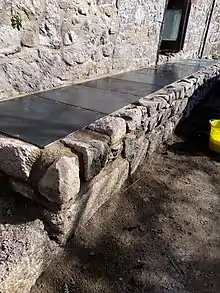 Many milk churn stands would have been lost during road improvement schemes owing to their proximity to the roadside[5] but many were left in situ to slowly decay; thus there are few original wooden examples. However, many made from more durable materials such as concrete or stone have survived and can be seen throughout the country and, indeed, in other countries. Some have been renovated as reminders of the former widespread practice,[7][8][9] while some replica stands have been erected for the same reason in stone[10] (such as the example at Wadenhoe) and the reinstatement or removal of some has even been the subject of planning application.[11][12] Some milk churn stands have been recorded as historical monuments by regional bodies[13] and the National Archives.[14]
