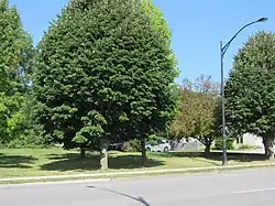 The building was located near this grove of trees.
